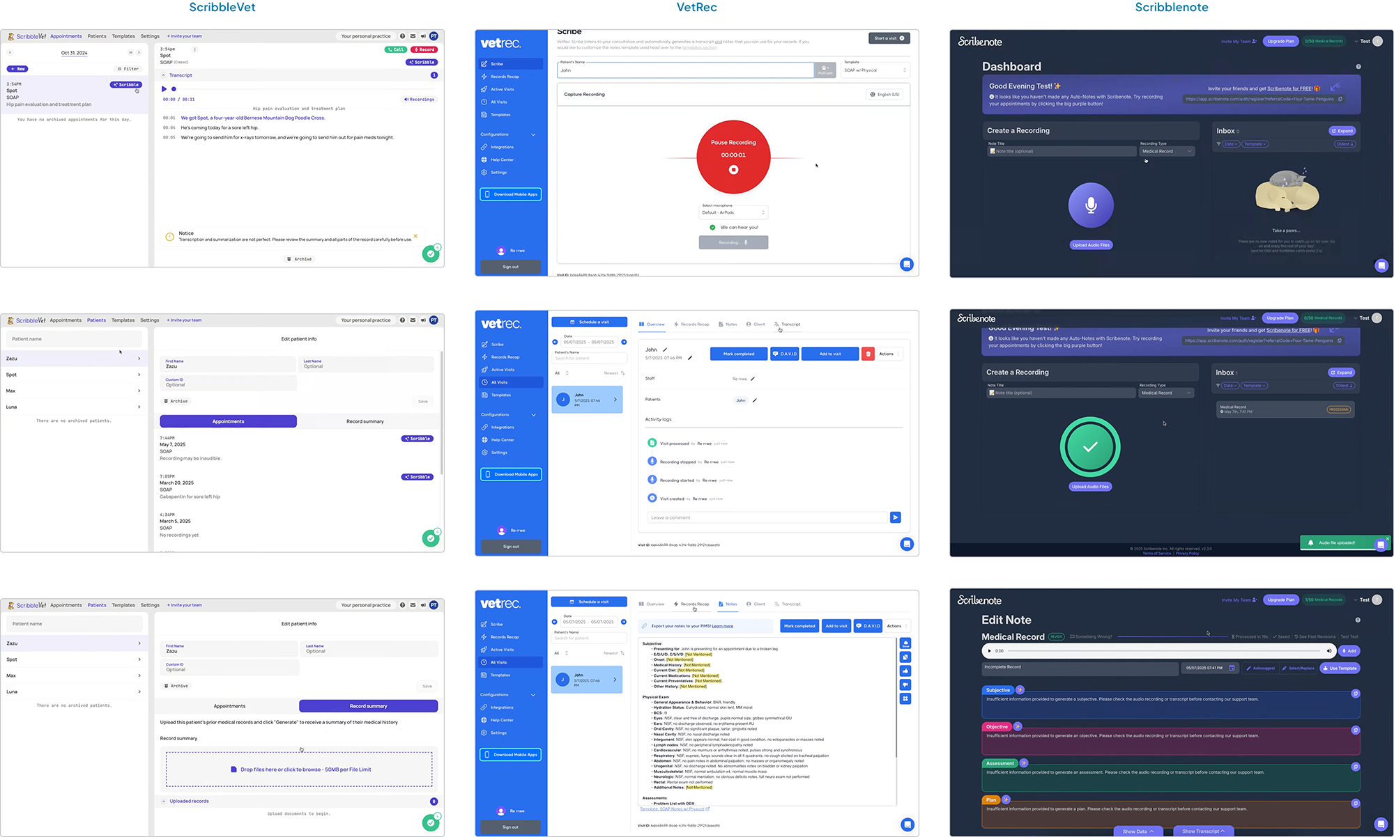 I analyzed other vet scribe apps to identify similarities and differences in their approaches for user flow, user interaction, and information architecture.
